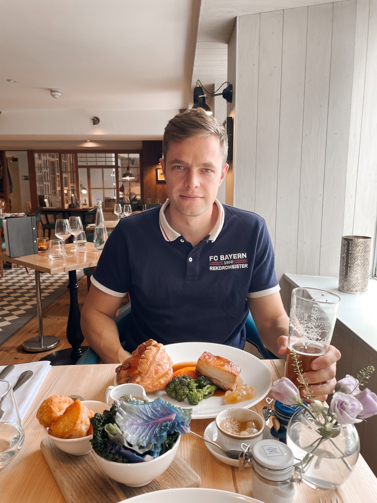 Stow-on-the-Wold is a quintessential Cotswold market town steeped in history. Its cobbled streets are lined with antique shops, independent boutiques, and cozy tearooms. At the heart of the town lies its historic market square, once a bustling hub for wool traders. That’s where we found ourselves a perfect place, the Old Stocks Inn, to enjoy a traditional English Sunday roast.