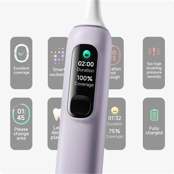 After my usual deep-dive research session, I ended up choosing the Xiaomi Oscillation Electric Toothbrush Pro: a purple one for me and a white one for him. What really sold me was the smart little screen – it shows the 4 brushing modes, gives feedback on your brushing habits, and uses different vibrations to tell you when it’s time to move to a new area of your mouth.